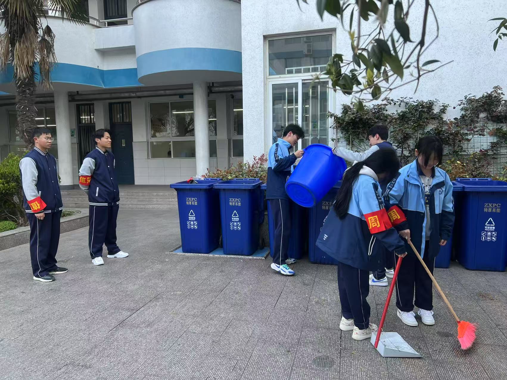 为了营建良好的校园气氛,保持优美干净的学习环境,加强学生的责任感和主人翁精神,在学校政教处的组织下,2417班迎来了他们为期一周的值周活动。