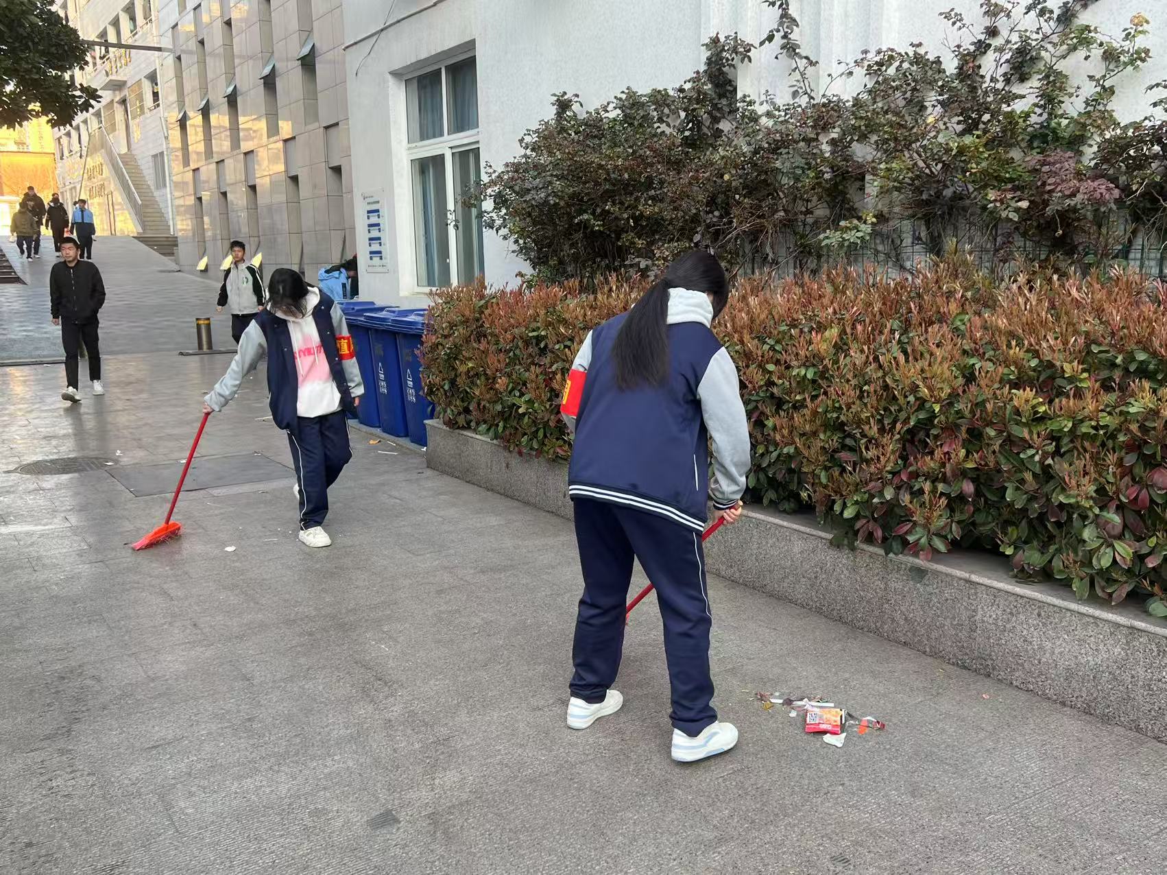 7点,他们已拿起扫帚分散在校园的各个角落,开始了细致的卫生打扫,他们的身影在晨光中显得格外坚定,仿佛在用行动告诉所有人:新的一天,从整洁的校园开始。