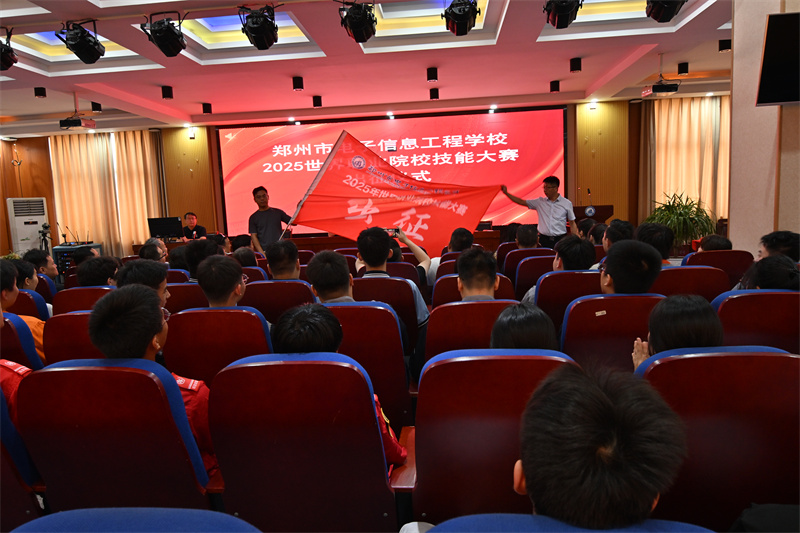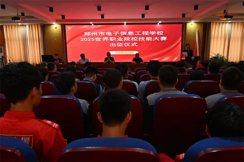 2025年8月15日上午,郑州市电子信息工程学校在务实楼三楼会议室为即将征战“2025世界职业院校技能大赛争夺赛”的师生队伍举办出征仪式。参赛师生及校领导成员齐聚现场,共同见证这一热血时刻,为参赛队伍送上最热烈的祝福与期盼。