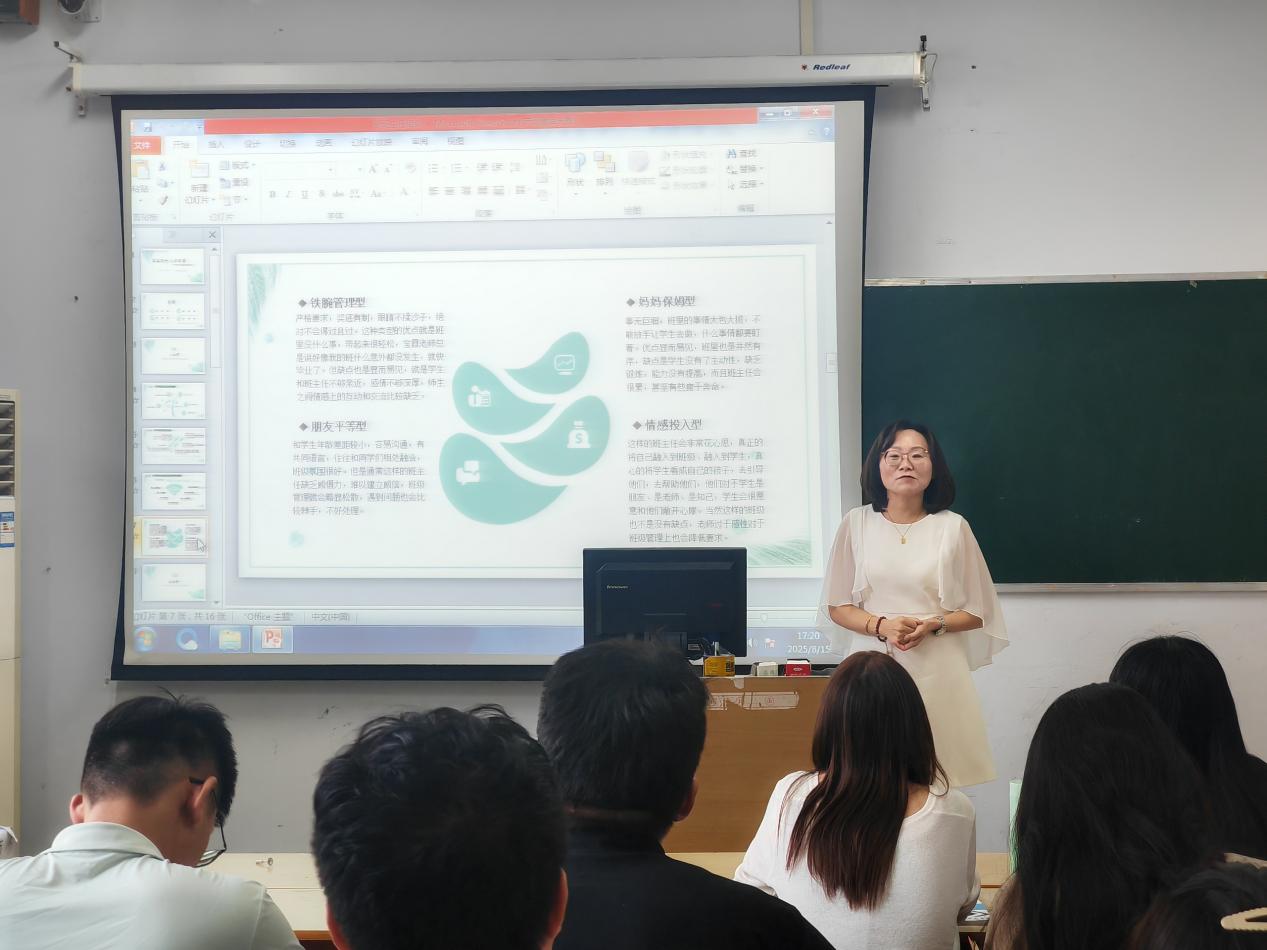 为助力新班主任快速适应岗位、提升育人能力,郑州市电子信息工程学校德育工作室主持人杜晓燕老师于2025年8月15日为新任班主任开展了一场主题鲜明、内容扎实的岗前能力培训。本次培训以“眼里有光·心中有爱”为核心,系统传授了中职班主任工作的理念、方法与策略,为新班主任的职业生涯奠定了坚实基石。