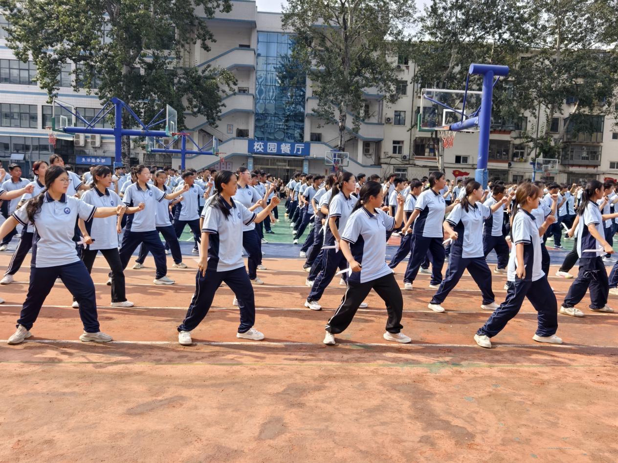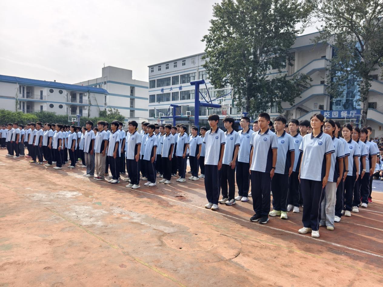 校长韩兴华、德育副校长高勤华、中原区人民武装部参谋于凌鹏、政教处主任张丽君等学校中层以上领导、2025级全体班主任及新生、部分家长代表参加了大会。大会在庄严的国歌声中拉开帷幕,全体师生面向国旗行注目礼,高唱国歌。