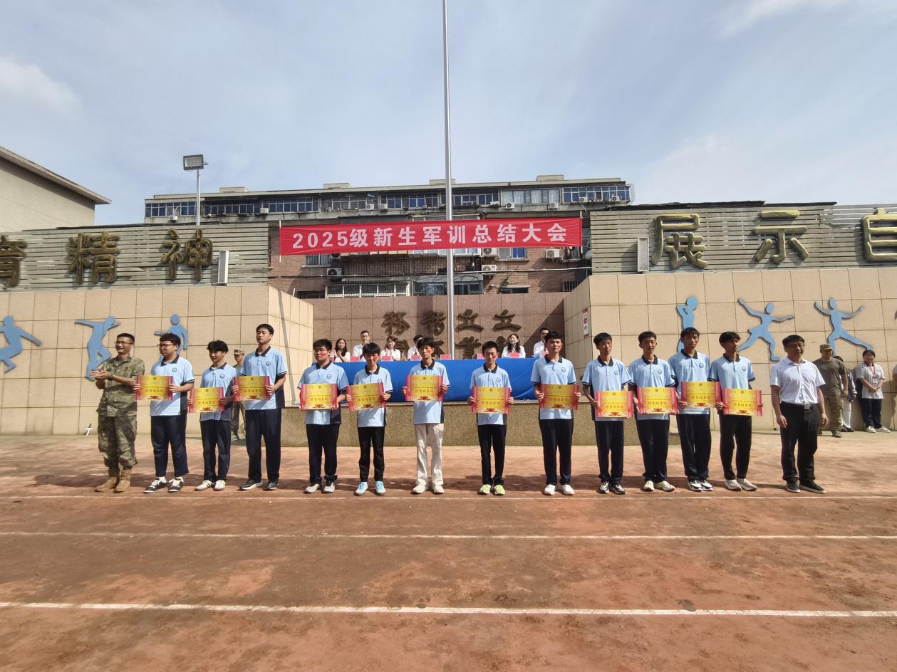 旌旗猎展,铸钢铁意志;军歌嘹亮,展青春风采。2025年8月26日上午,郑州市电子信息工程学校2025级新生军事训练总结大会在学校后操场隆重举行。经过数日的严格训练,全体新生以昂扬的斗志、严整的军容、整齐的步伐,圆满完成军训任务,为中职生涯第一课交上了一份优秀的答卷。