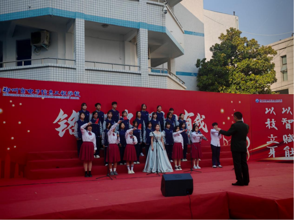 为深入贯彻落实爱国主义教育,弘扬伟大爱国精神,在纪念“一二·九”运动90周年之际,郑州市电子信息工程学校于2025年12月5日在学校前院隆重举行“铭记历史·强国有我”爱国歌曲合唱比赛决赛暨颁奖典礼。活动旨在引导广大师生铭记近代以来青年学生的爱国壮举,传承以爱国主义为核心的民族精神,展现中职学子昂扬向上的精神风貌与时代担当,增强历史使命感与集体荣誉感。