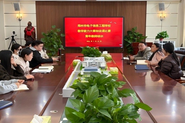 为巩固青年教师教学基本功,提升信息化教学设计与赛事备赛能力,助力学校即将开展的信息化说课比赛。2026年3月24日下午,教务处组织部分青年教师在务实楼小会议室开展“中职教师如何说课”专题培训会,特邀市级、省级、全国级“创新杯”信息化教学设计及说课比赛一等奖获得者、郑州市电子信息工程学校罗菲老师进行深度授课。本次培训由教务主任刘奇超主持。