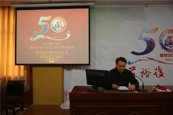 校党总支书记付强首先为校庆活动致辞,他讲道 “建校50年来,一代代师生在艰苦创业中奋力拼搏,在无私奉献中开拓进取,用智慧、心血和汗水,谱写了无愧时代、无愧历史的辉煌篇章。相信在各级领导的关怀厚爱下,在社会各界的大力支持下,广大师生员工共同努力,郑州市电子信息工程学校这艘历经五十年风雨洗礼、充满生机活力的航船,一定会实现建设全国知名品牌中职学校的目标,一定会在教书育才、科教兴国的碧海上乘风破浪、再铸新的辉煌”。