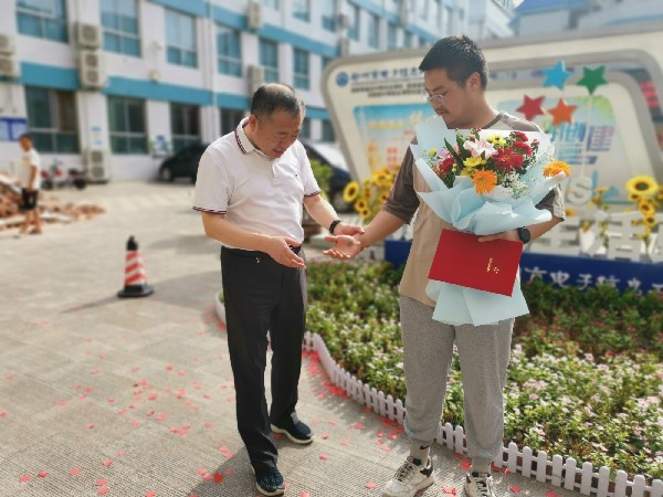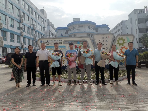 校长李京辉(左三)欢迎参赛师生载誉归来