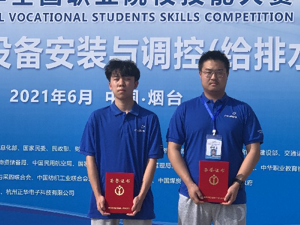 7月1日,2021年全国职业院校技能大赛中职组“建筑设备安装与调控(给排水)”赛项的在山东烟台闭赛,代表河南省参加该项目的比赛的郑州市电子信息工程学校的选手张义浩、许玉豪,在指导教师吴廷鑫、陈卓的辅导下,带伤参赛、勇敢挑战,最终在23支代表队中脱颖而出,荣获三等奖。