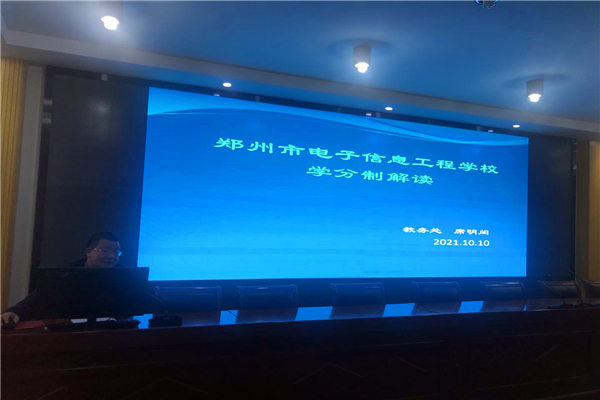 10月10日下午,郑州市电子信息工程学校在报告厅举行学分制政策专题讲座。本次讲座由教务主任席明闰主讲,采取线上线下相结合的形式,组织了2133、2134、2135班学生及班主任80余人在报告厅观看,其他21级全体新生在教室利用钉钉直播在各班教室进行观看。
