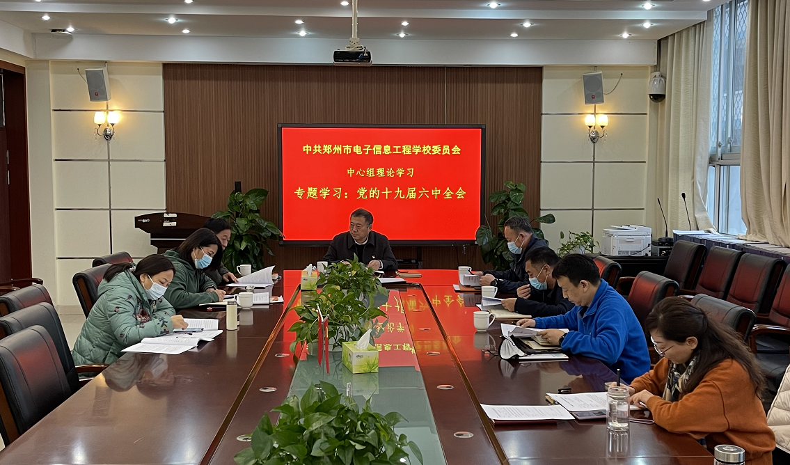 2021年11月15日下午,郑州市电子信息工程学校党委理论学习中心组在务本楼一楼会议室召开学习会,专题学习党的十九届六中全会精神。党委书记、校长李京辉主持会议,党委理论学习中心组全体成员参加学习会。