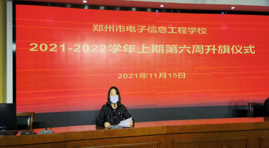 11月15日,在我校升旗仪式上,政教处主任张丽君向全校师生讲到,党的十九届六中全会是在我们党百年华诞的重要时刻,在“两个一百年”奋斗目标历史交汇关键节点上召开的一次重要会议,全会指明了中国共产党百年奋斗的重大成就和历史经验,具有重大而深远意义。张主任向各位同学提出倡议,要学习党的精神,深刻感受民族复兴的艰辛伟大,深刻认识使命光荣、重任在肩。百年风雨兼程,百年沧桑巨变,因为有了中国共产党的领导,中国人民实现从站起来到富起来再到强起来的伟大飞跃。百年党的历史伟业永载史册,我们要更加坚定实现中华民族伟大复兴的信心和底气。作为中职生的我们要坚定理想信念,牢记初心使命,努力奋发向上,为第二个百年奋斗目标、实现中华民族伟大复兴的中国梦不断努力,奉献出自己的一份力量。