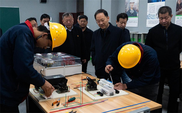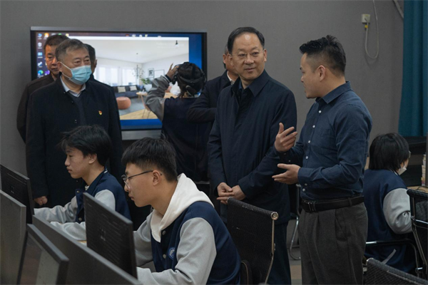 在郑州市电子信息工程学校,陈红民副市长先后走进VR实训室、物联网、工业机器人、智能家居等实训室,详细察看实训设施设备和教学组织安排,对专业建设、师资培养、学生学习等方面进行了深入了解,现场观摩了参加全国职院校技能大赛选手的模拟训练,对郑州市电子信息工程学校重视技能教学、探索“以赛促教”人才培养机制,取得的国赛优异成绩表示肯定。