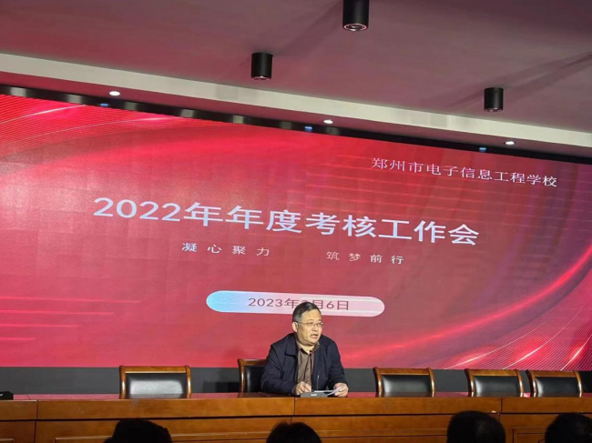 3月6日上午,郑州市教育局第二考核组对郑州市电子信息工程学校进行2022年度综合考评工作。综合考评工作会议在务实楼三楼报告厅召开,郑州市电子信息工程学校全体教职员工参加考核。