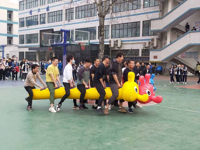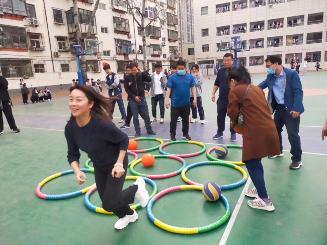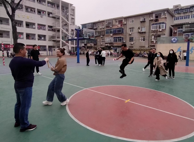在校园操场,学校工会为大家准备了集益智、趣味、娱乐、竞技、团队协作于一体的“旋风跑、井字棋、毛毛虫、跳大绳”等四个活动项目,并组织学生为老师们做了演示,帮助参与职工熟悉赛项、了解规程、掌握技巧。参加活动的教职工精神抖擞,团结协作,轻松友爱,现场掌声、笑声不断,充分感受到了学校的用心、互动的快乐和运动的酣畅。