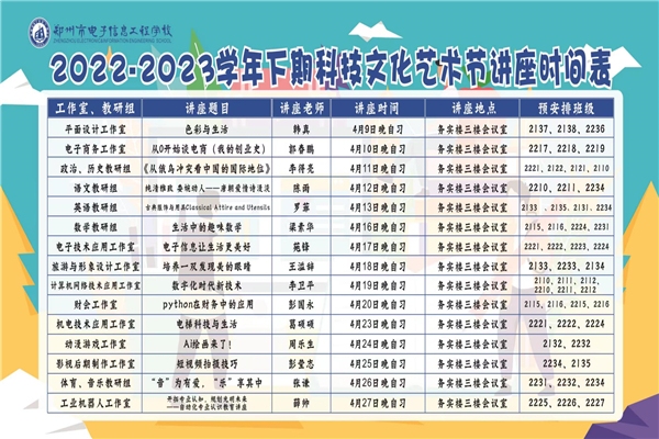 科技文化艺术节讲座安排
