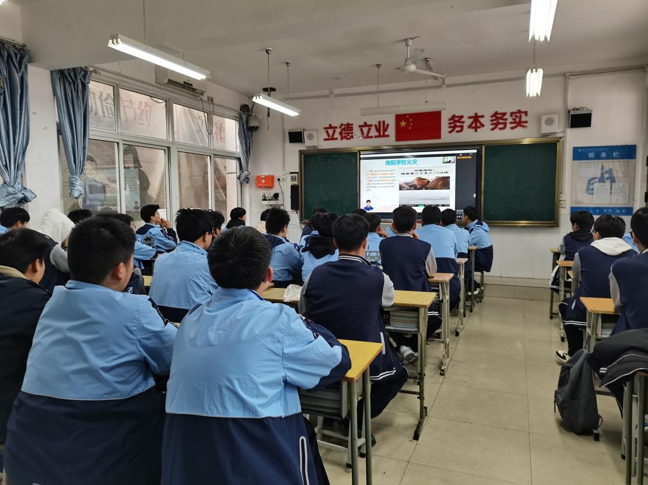 王教员以校园防火安全为主题,结合近年来发生的典型火灾事故案例,用通俗易懂的语言,向学生宣讲火灾的基本常识,深入分析了校园火灾的成因,客观的指出了校园消防安全存在的共性问题,强调了校园禁烟、禁火的重要性。讲授了日常安全防护,紧急疏散与避险行动、灭火器的正确使用方法等消防安全基础知识,为同学们上了一堂鲜活生动,务实管用的消防安全教育课,切实增强了同学们的消防安全意识和自防自救能力,营造了良好的校园消防安全环境。