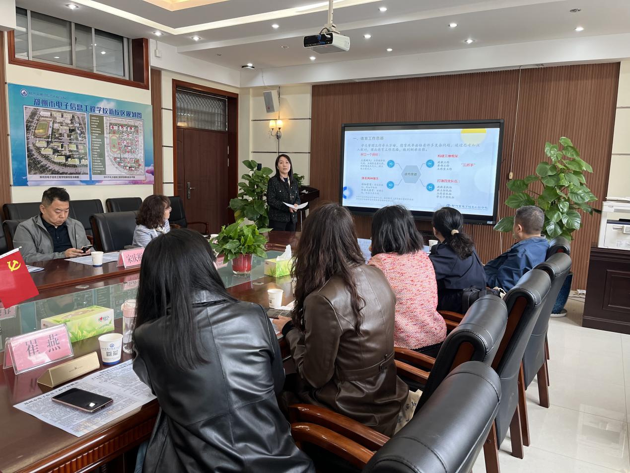 3月22日,山西长治卫生学校武蔚蔚副校长、天睿工作室主持人崔燕老师及工作室成员一行十六人,到我校班主任工作室进行参观交流,一起分享德育教育经验。郑州市教育科学规划与评估中心职业教育教学研究室副主任牛晓红也一并莅临,对班主任工作室经验交流工作进行指导。学校副校长高勤华、政教处张丽君主任、我校市级班主任工作室主持人杜晓燕老师,以及班主任工作室的成员代表参加了此次交流会。