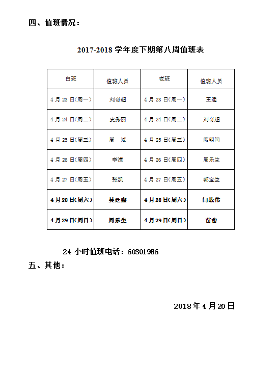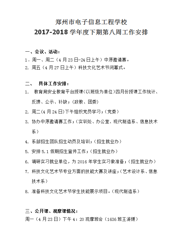 2017-2018学年度下期第八周工作安排