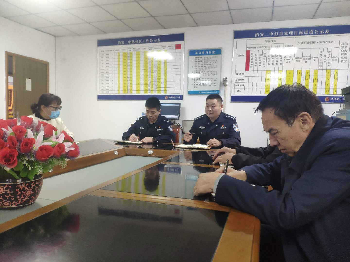 为了学习防范电信网络新型违法犯罪相关知识,10月28日下午,郑州市电子信息工程学校综治办教师苗雨阳与政教处、总务处教师一同参加绿东村派出所组织召开“防电信诈骗”宣传员动员部署会,绿东村派出所白俊杰警官主持会议。