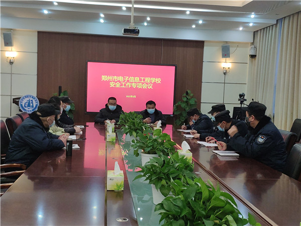 为保障新学期安全工作的顺利开展,3月8日下午,郑州市电子信息工程学校综治办在综合楼一楼会议室召开2020—2021学年下学期安全工作会议,副校长焦火锡、综治办主任苗畬、综治办苗雨阳老师、韩真老师,及全体保安人员参加会议。会议由副校长焦火锡主持。