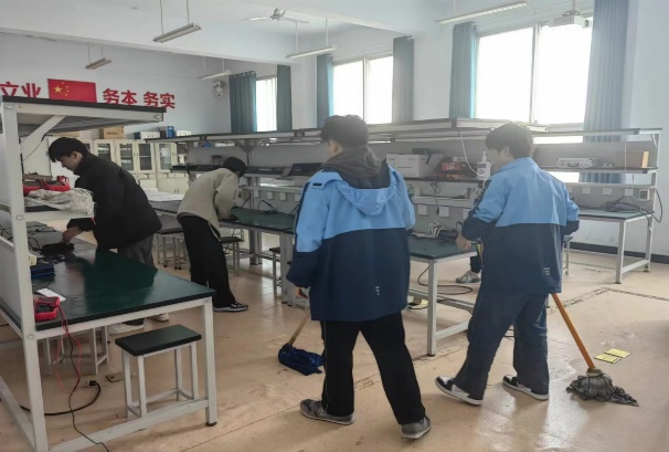 设备管理员们在梁素华老师的带领下,每天对机房进行卫生及职业素养检查,检查各班每次实训课7S执行情况,以保证实训室干净、舒适,推进学生职业素养的养成,检查结果纳入了各班的班级量化考评,有效地促进了学生职业素养的养成。