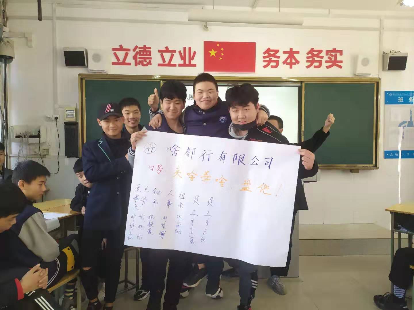 妙趣横生的课堂,学生以小组为团队,创建属于自己的公司名称、logo、口号、人员分工。