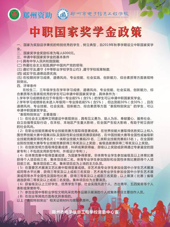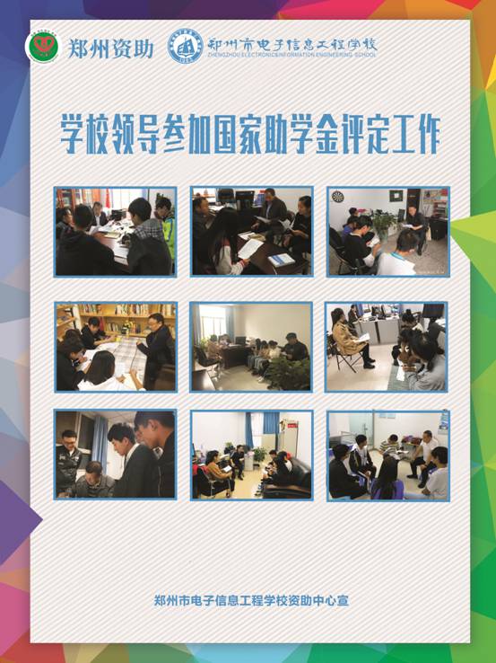 郑州市电子信息工程学校资助育人工作开展纪实资助育人是促进教育公平和社会公正,构建社会主义和谐社会的重要举措。不让一名家庭经济困难学生失学是党和国家的庄严承诺。在 “精准资助”的基础上,如何确保家庭经济困难学生能够顺利入学、安心学习、圆满就业、成人成才,是资助工作今后的重要工作内容。我校在资助育人工作重心转移过程中进行了积极探索。一、积极开展各项资助育人工作。1. 引导学生自律,自强,诚信,感恩。2. 积极开展受助学生参加志愿者服务活动。3. 设立勤工助学岗位,优先聘用困难家庭学生。4. 调研困难