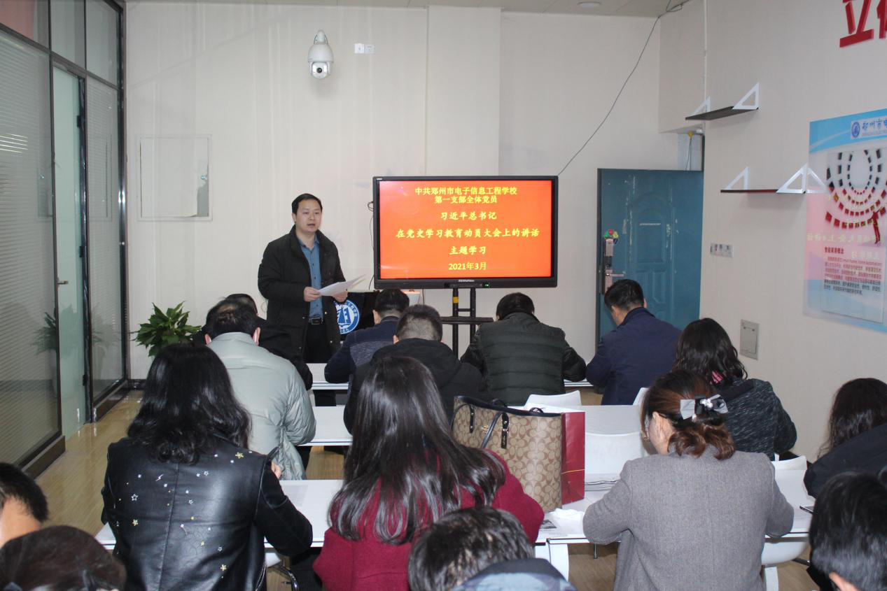 3月9日,学校各党支部召开支部党员大会,专题学习习近平总书记在党史学习教育动员大会上的重要讲话精神,通过学习,大家一致认为,开展党史学习教育,是对全体党员的一次深刻思想洗礼,有利于教育引导广大师生进一步坚定理想信念,做到知史爱党、知史爱国,感悟践行初心使命。要自觉把思想统一到习近平总书记重要讲话精神上来,深入开展党史学习教育,把学习成效转化为推动学校高质量发展的工作动力。