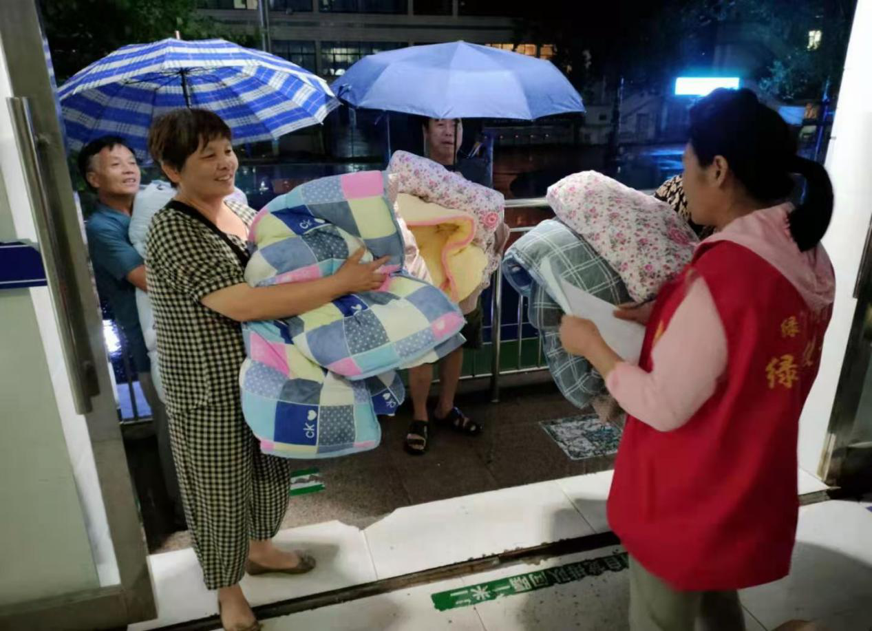 洪水无情,人间有爱。在受灾群众安置过程中,绿东村街道防汛安置点临时党支部党员干部同辖区单位、众多志愿者一道,在党旗引领下,急群众之所急,想群众之所想,全体奋战在出入登记、分发物资、卫生清洁、灾后重建等工作中,与受灾群众共同渡过难关,汇聚成英勇抗洪、灾后重建、亲民爱民的人间大爱。
