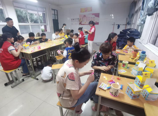 三是多样活动,树立信心。为了缓解转移群众心理压力,临时党支部协调电子信息工程学校在安置点利用多媒体教室组织受灾群众观看红色电影、小朋友做手工制作,开展心理健康辅导、讲授应急自救技能等各样活动。各样活动极大缓解创伤情绪,帮助受灾群众筑牢“精神堤坝”,树立灾后重建信心,以饱满地热情投入到重建新家园中。临时党支部党员每天为群众播放红色影视剧及孩子们喜爱的动画片,安置点时时传出愉悦的笑声,一扫暴雨灾害带来的忧愁。郑州市电子信息工程学校教师志愿者自发采购儿童手工玩具,为受灾儿童教授手工课,转移孩子们注意力,缓解心理压力。郑州市红十字法律工作志愿服务队来到安置点为大家讲授心肺复苏术等急救技能。由心理专家组成的志愿团队为转移群众开展灾后心理疏导。组织心理专家走进安置点与受灾群众“面对面”“一对一”交流,通过拉家常的方式询问群众灾前灾后生活情况与当前需求,向受灾群众普及常见灾后心理反应及创伤后应激障碍等心理学知识,引导大家保持积极乐观的心态,互帮互助、同舟共济、共度汛期。