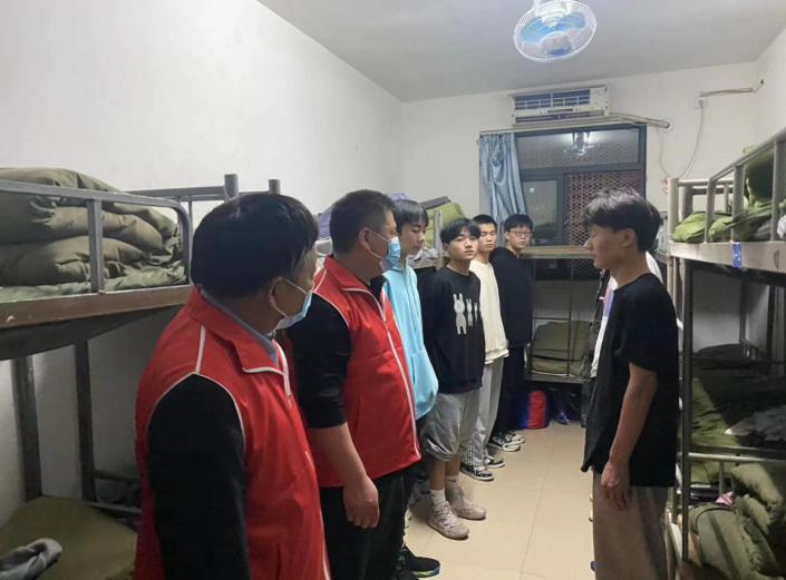 高勤华校长、贾志伟老师校园封闭管理期间走访学生宿舍