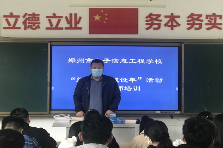 为促进青年教师快速成长,打造一支师德高尚、业务过硬、理念先进的青年教师队伍,2022年4月13日下午,郑州市电子信息工程学校教务处举办以“能力作风建设年”为主题的青年教师培训会。本次培训由教务主任席明闰主持,特邀副校长高勤华和闫战伟老师为学校入职5年内共计26名青年教师进行培训,副校长李向伟以本次培训为契机对全校青年教师提出殷切期望。