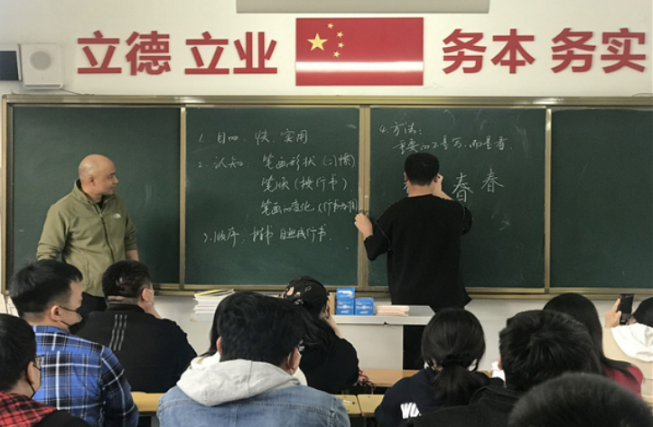培训会上,闫战伟老师从写字的目的、底层认知、日常练字的顺序和方法三个方面具体讲述了如何写出“好”字。闫老师强调写字的目的是快和实用,随后从笔画形状、笔顺、笔画的变化重塑青年教师对于写字的底层认知。闫老师从运笔及排版等方面向大家讲解了一些汉字书写的小技巧,着重强调正确的运笔方法。为了让青年教师们进一步知道如何规范书写汉字,他现场举例,边讲解边书写了“一”“里”“九”“杨”“美”“春”等字以做示范并邀请老师们上台书写演示。最后,闫老师强调练字重要的是看而不是写并就日常练字提出几点建议:一是每天练字半小时,只练一个字;二是练字要在白字上写,不要使用辅助工具;三是练字时需动眼动脑动手,在练习过程中要善于发现问题并找出根源,才能有效学习,不断进步。