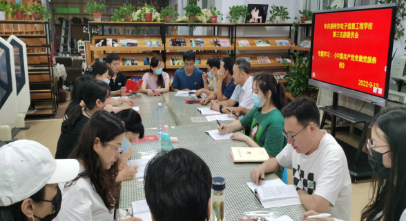 2022年9月13日下午,在校党委的统一安排部署下,第三党支部在校阅览室召开了支部专题学习会进行学习。