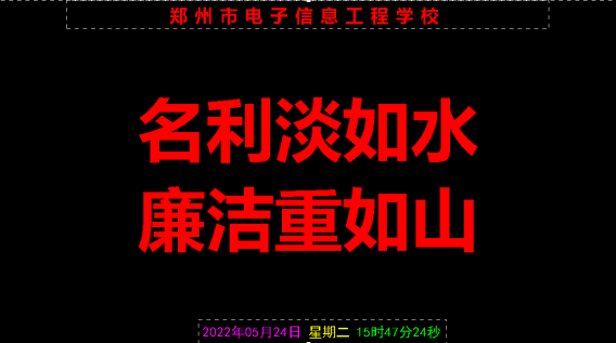 郑州市电子信息工程学校紧紧围绕习近平新时代中国特色社会主义思想和党的十九大精神这条主线,认真贯彻全面从严治党新要求,实施清廉学校创建“五个一”工程,通过“五抓”(抓学习、抓文化、抓课堂、抓师德、抓宣传)“五促”(促党风、促政风、促学风、促教风、促校风)”,进一步完善清廉学校建设创建实践,全力打造清廉学校示范校。
