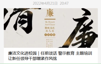 二是开辟微信专题,重点展示清廉学校创建典型性成果。在学校官方微信订阅号上,开设清廉学校专题栏目,连续七周定时发布《廉洁文化进校园|百年党史中的“纪律”|共产党人的廉洁故事》等专题宣传文章七篇。通过多媒体宣传的形式,让师生全面了解清廉学校创建中党风廉政理论、中央八项规定精神、制度规章条理、典型人物事迹等,不断增强师生的清廉意识和知识储备。
