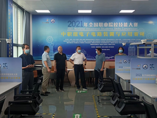 随后,在李京辉校长的陪同下,社旗县中等职业学校一行逐一参观了学校动漫VR实训室、茶艺室、校园电视台、网络安全实训室、智慧教室、施耐德电气实训室及全国职业技能大赛专用场地等具有专业特色的实训场地,详细了解了学校教学管理模式、办学特色、招生规模等情况。李永敬校长对学校先进的设备和优秀的管理制度给予了高度的评价,认为“9S”管理方式科学、规范、高效,评价此次参观收获颇丰,不虚此行。