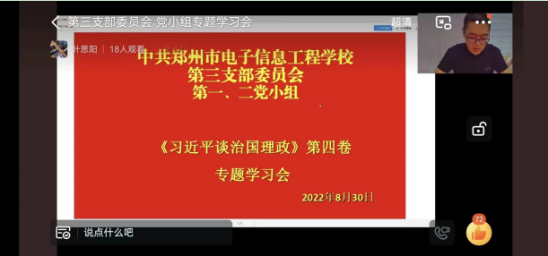 2022年8月30日,根据学校党建工作计划,学校各党小组利用钉钉直播的形式召开专题学习会,集中学习《习近平谈治国理政》第四卷。