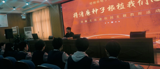 活动最后,校团委组织部部长刘若彤带领全体学生干部宣读并签署了《郑州市电子信息工程学校“清廉文化进校园”倡议书》,承诺恪守学生本分,牢记学生干部宗旨,扎扎实实做事,营造平等氛围,摒弃庸俗习气。
