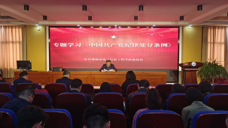 为进一步增强纪律意识,强化思想武装,增强行动自觉,学习好、宣传好、执行好新修订的《中国共产党纪律处分条例》,2024年4月9日下午,学校党委组织全体党员同志进行专题学习会,传达学习《中国共产党纪律处分条例》等文件精神并展开交流研讨。校党委书记、校长李京辉主持会议并领学,学校全体党员参加会议。