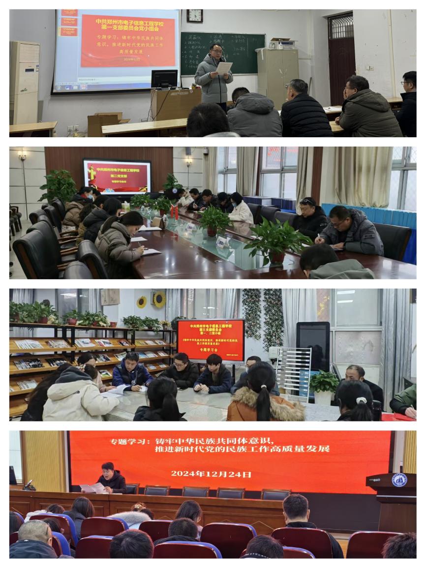 为深入学习贯彻习近平总书记关于铸牢中华民族共同体意识、民族工作的重要论述和讲话精神,2024年12月24日下午,在校党委的统一安排部署下,我校各党小组组织召开党小组专题会议,专题学习《铸牢中华民族共同体意识,推进新时代党的民族工作高质量发展》。