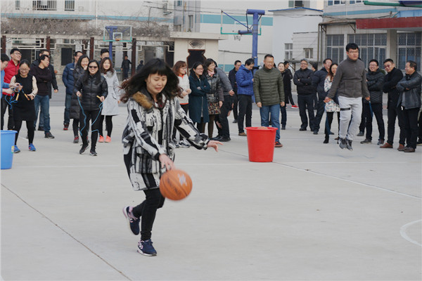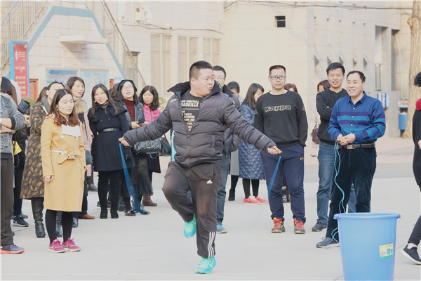 3月8日下午,郑州市电子信息工程学校的运动场上,女教师们发丝飞扬,笑容洋溢,欢声笑语,与男教师们同场竞技,在跳绳+拍篮球+两人三足跑的活动中,大展风采。原来,学校正在为纪念“三八”国际妇女节开展趣味运动会。
