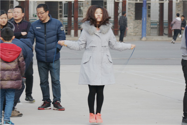 “别看篮球我们不如男老师,跳绳可快着呢!”3月8日下午,郑州市电子信息工程学校的运动场上,女教师们发丝飞扬,笑容洋溢,欢声笑语,与男教师们同场竞技,在跳绳+拍篮球+两人三足跑的活动中,大展风采。原来,该校正在为纪念“三八”国际妇女节开展趣味运动会。