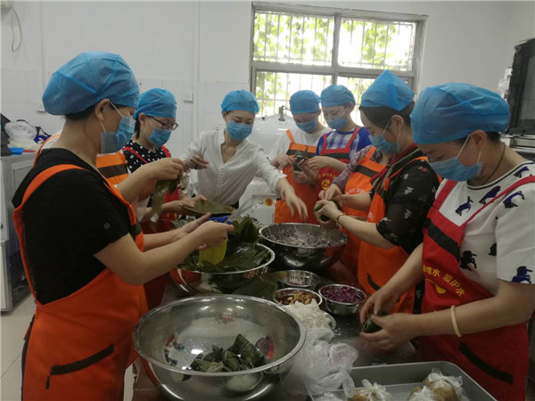 感受传统文化,师生合包粽子