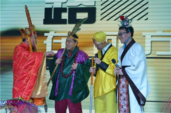 在随后的联欢中,学校不同系部、处室的老师们载歌载舞,喜气洋洋,共演出了19个节目——既有热爱乡土、赞美校园的诗朗诵《老家河南》、《校园颂歌》,也有展现活力、团队协作的舞蹈《爱在人间天堂》、《舞蹈串烧》、《板蓝花儿开》;既有致敬传统文化的昆曲独唱《懒画眉》,也有表现日常工作的舞台短剧《丢手绢》;既有借古讽今、提倡环保的小品《敢问路在何方》,也有弘扬爱国精神、正能量满满的小品《非诚勿扰》;既有展现个人风采的独唱《追寻》、《这个年纪》、《追梦》和《绿叶对根的情谊》,也有体现集体力量的合唱《声律启蒙》、《映山红》、《最炫小苹果》、《我们正青春》和《朋友》。而校级领导班子则在一个小舞台剧《神秘节目》里,从分管不同工作副校长的视角,展现了全校的工作,诙谐幽默和表现形式把联欢会推向了高潮。