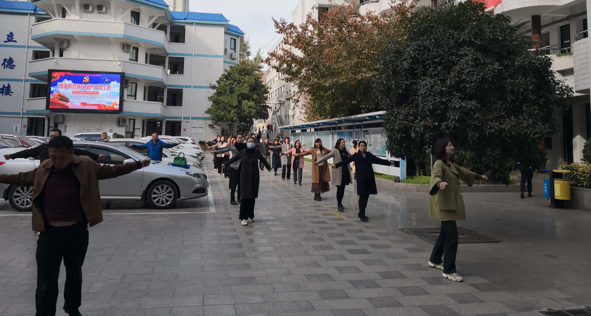 每天中午9:45分,老师们都会自觉来到学校前院随着音乐做间操,成为校园里一道靓丽的风景线。每天做二遍广播体操,不仅可以增强个人体质,而且养成良好的工作习惯,提高学校教职工的健康意识,牢固树立“健康第一”的理念,重视健康的良好氛围。