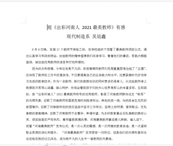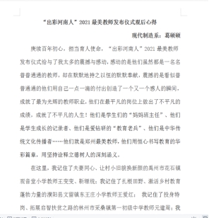 组织教职工收看“出彩河南人”2021最美教师发布仪式