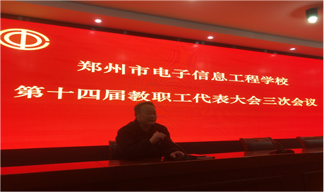 为了进一步落实学校管理体制,推进依法治校、民主办学的进程,维护教职工的权利,加强学校内部的民主监督,促进学校各项工作的顺利开展,2021年11月19日,郑州市电子信息工程学校隆重举行第十四届教职工代表大会第三次会议,大会由工会郭宝生主席主持。