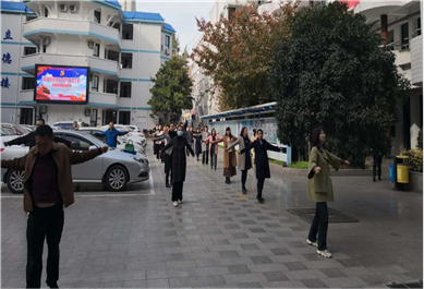 为了丰富我校教职工的业余生活,提高老师们的体育锻炼意识,增强教职工的体质,展示良好的精神风貌;郑州市电子信息工程学校每学期都组织教职工与同学们一起做大课间操活动。