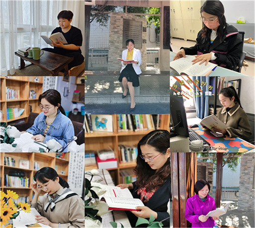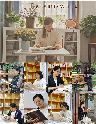 如果说,女教工的读书照片是静止的玫瑰,是美的瞬间定格,那么在她们的朗读视频里,你可以聆听到来自心灵的动人琴弦,观看到流动的花香书韵。