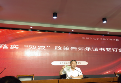 为了认真贯彻“双减”工作的落实,2023年9月2日,郑州市电子信息工程学校召开了“双减”工作警示教育全体教职工大会。